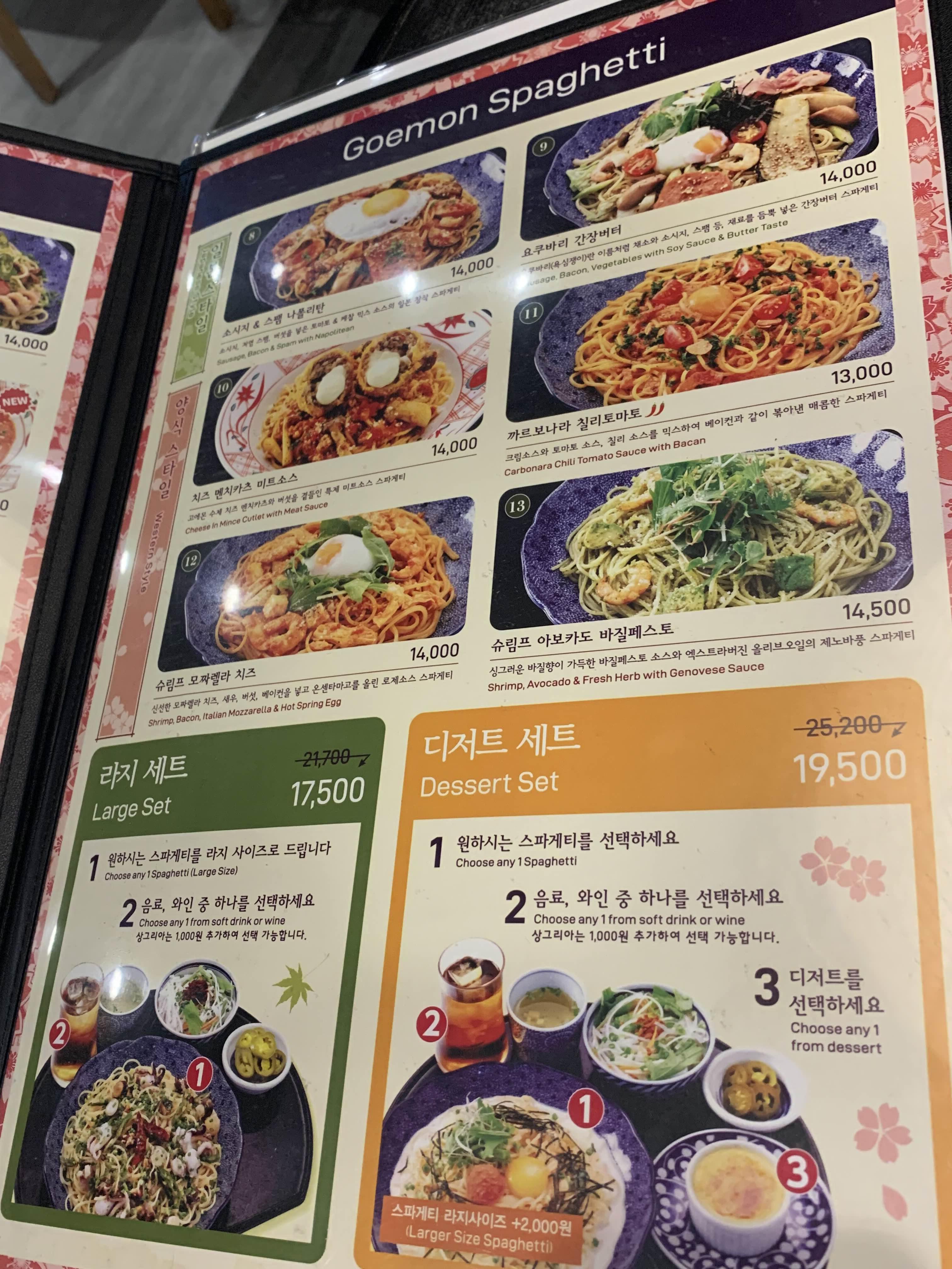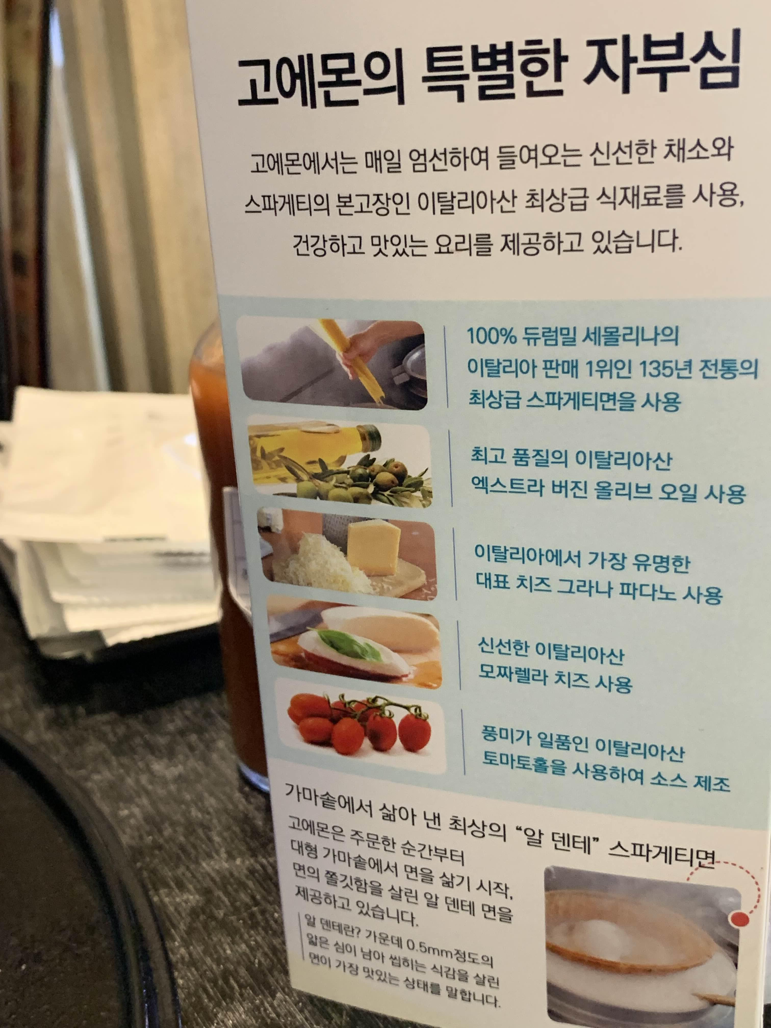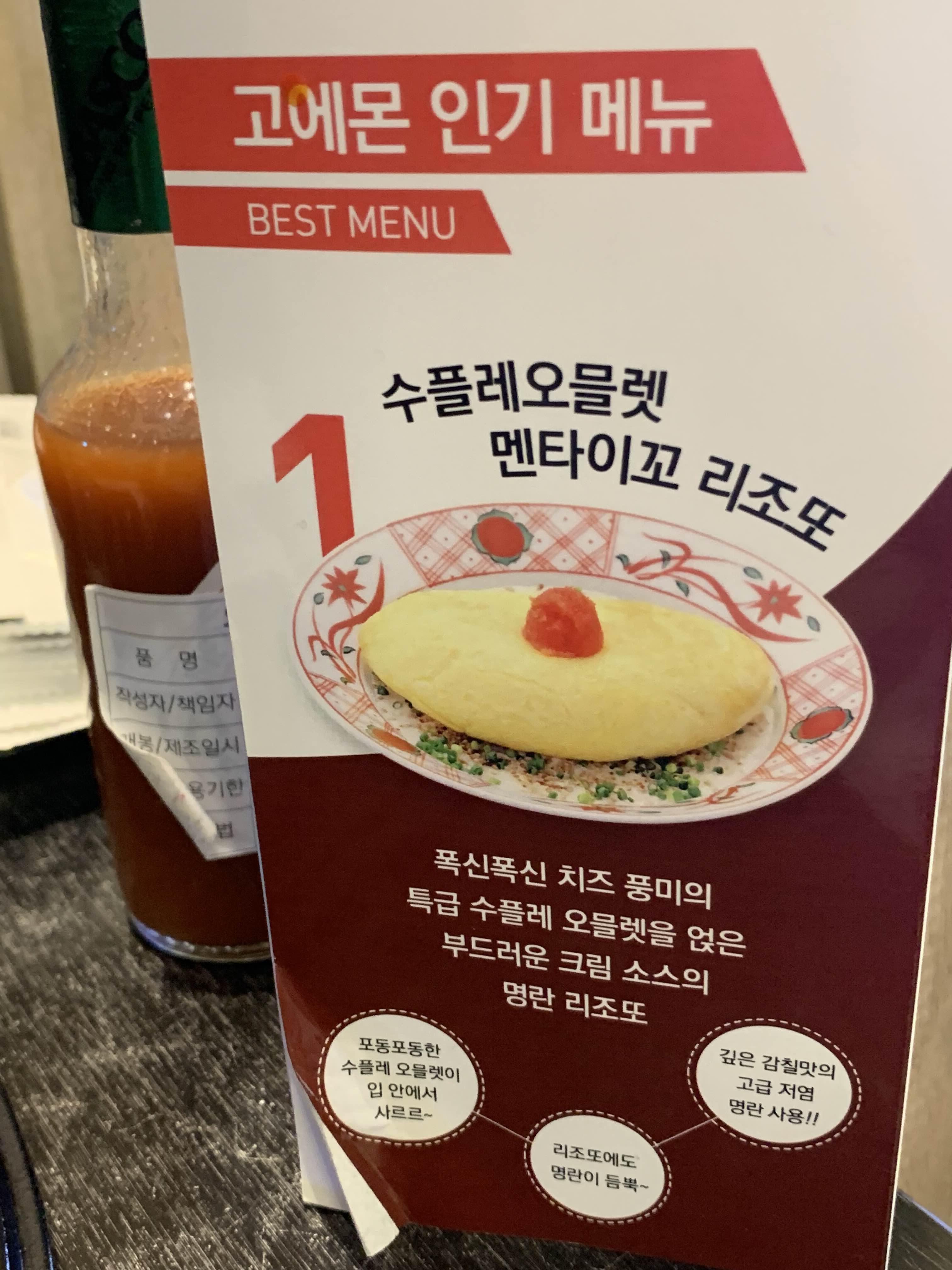 수플레 오믈렛으로 유명한 고에몬. 아보카도 바질페스토 파스타, 까르보나라 멘타이꼬 등 파스타도 주력으로 판매 중이다.