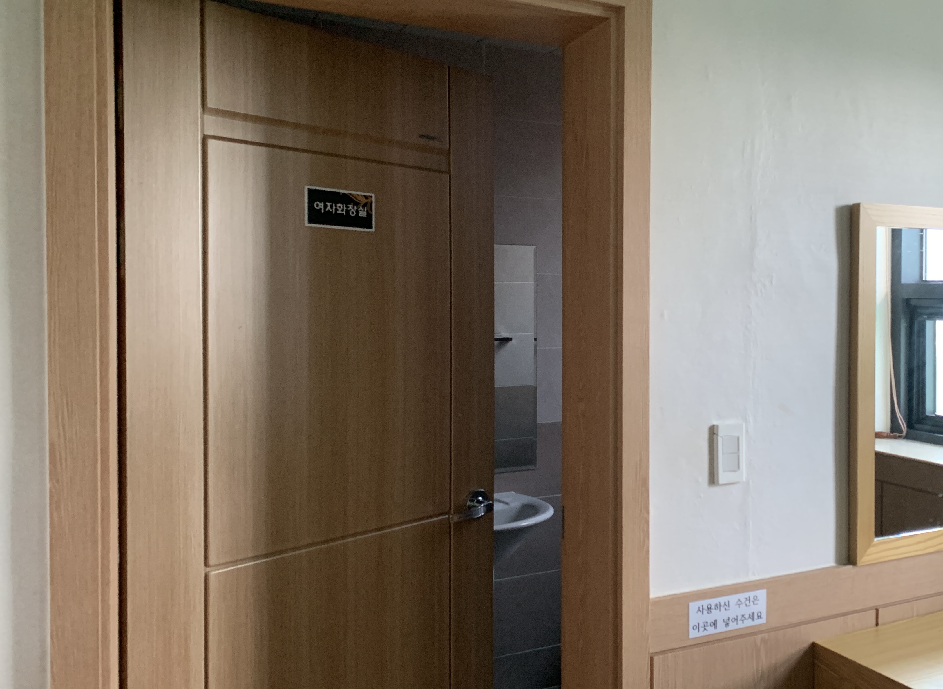 그리고 여자화장실과 남자화장실이 별도로 구분되어 있다. 화장실 역시 깨끗하게 관리되고 있더라. 샤워실, 세면대 2개, 변기가 있다. 샴푸와 린스 바디워시 그리고 일회용 칫솔 치약 비누 전부 기본으로 제공되니 따로 챙겨갈 필요 없다.