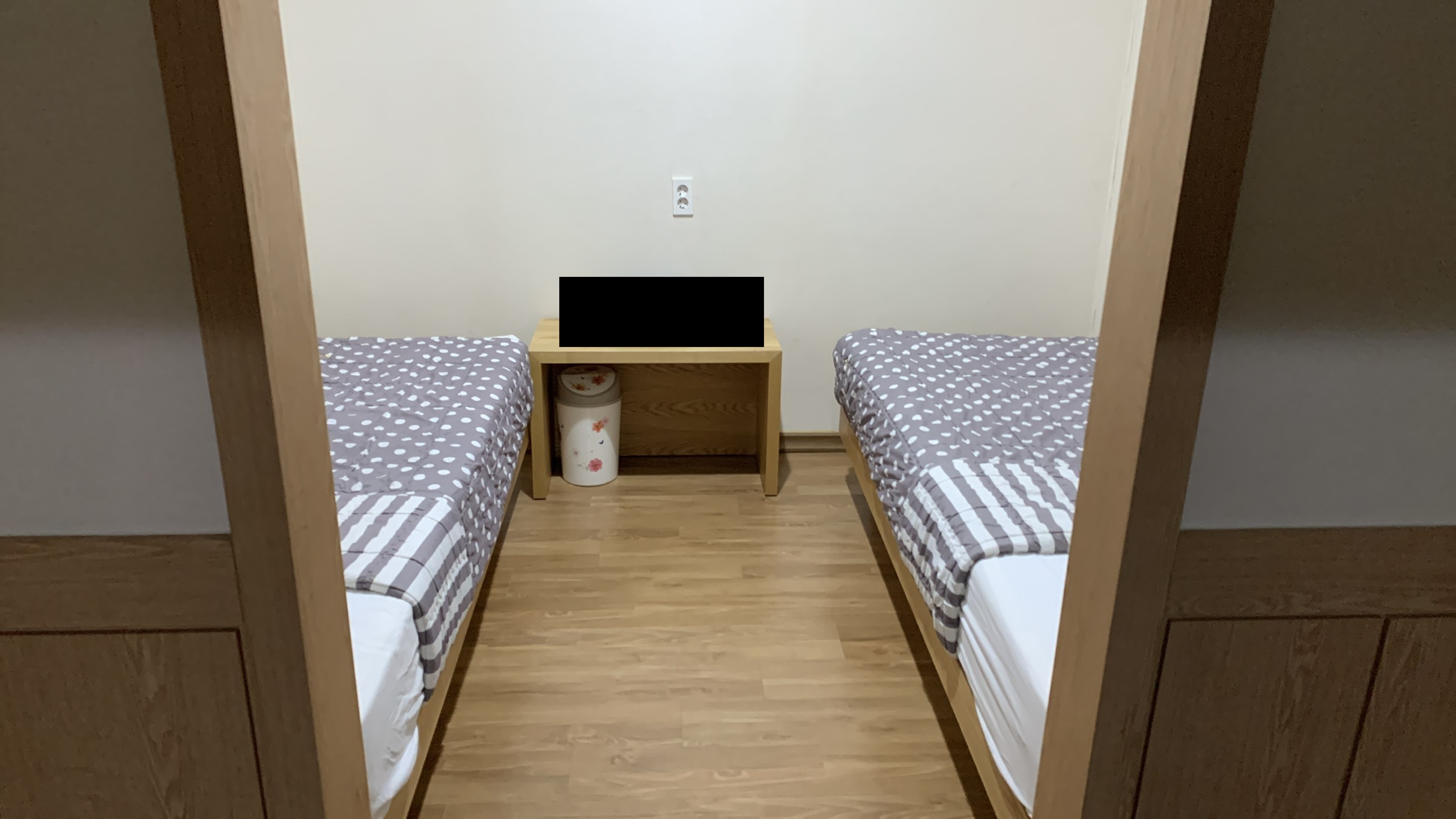 여기는 특 2호실. 방이 총 4개가 있고 침대는 각 방에 2개씩 총 8개가 있다. 침대 매트리스 상태는 좋은 편이 아니다. 물렁한 물침대 같다. 그렇지만 이불은 청결하게 유지되는 것 같았다.