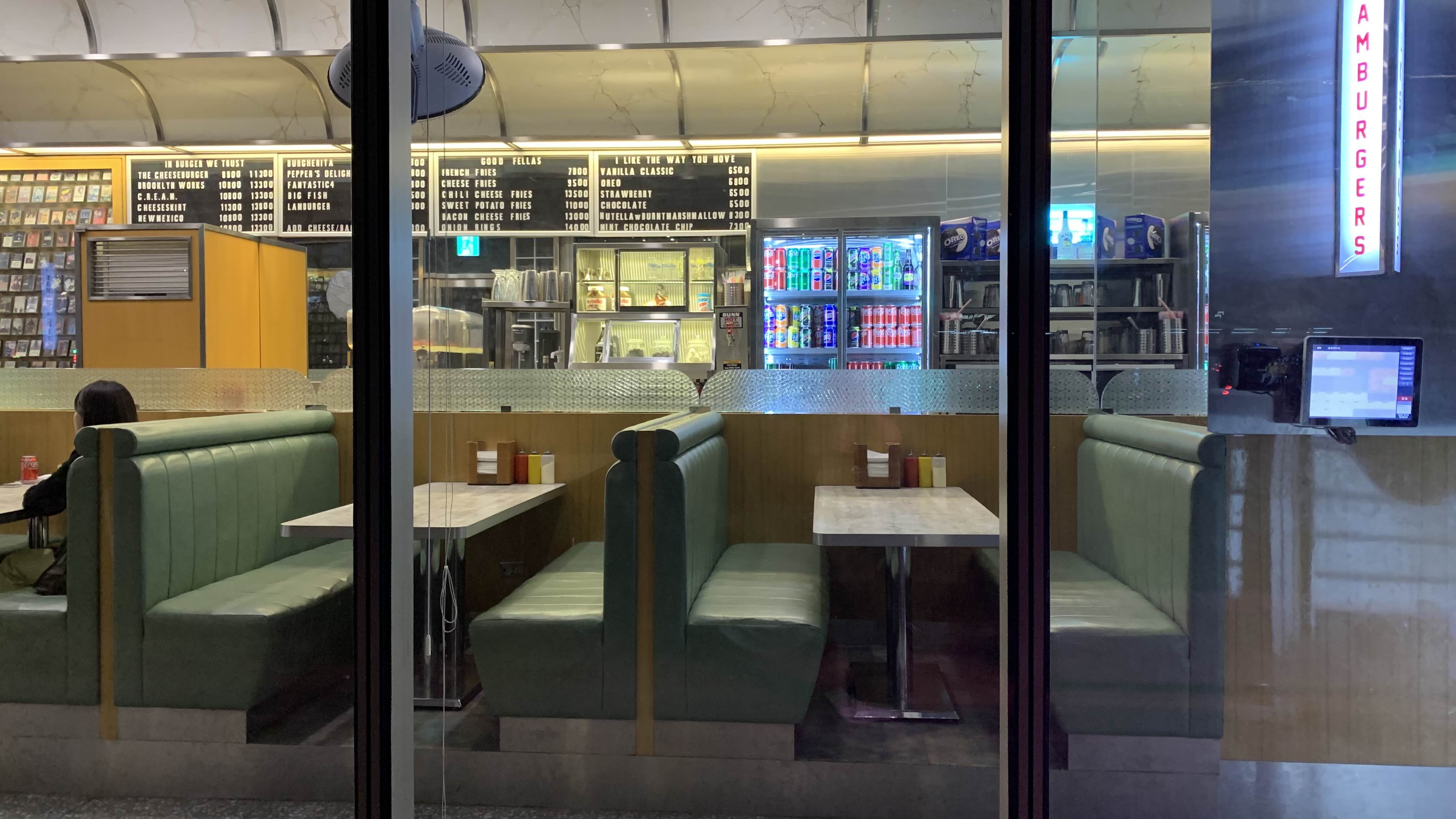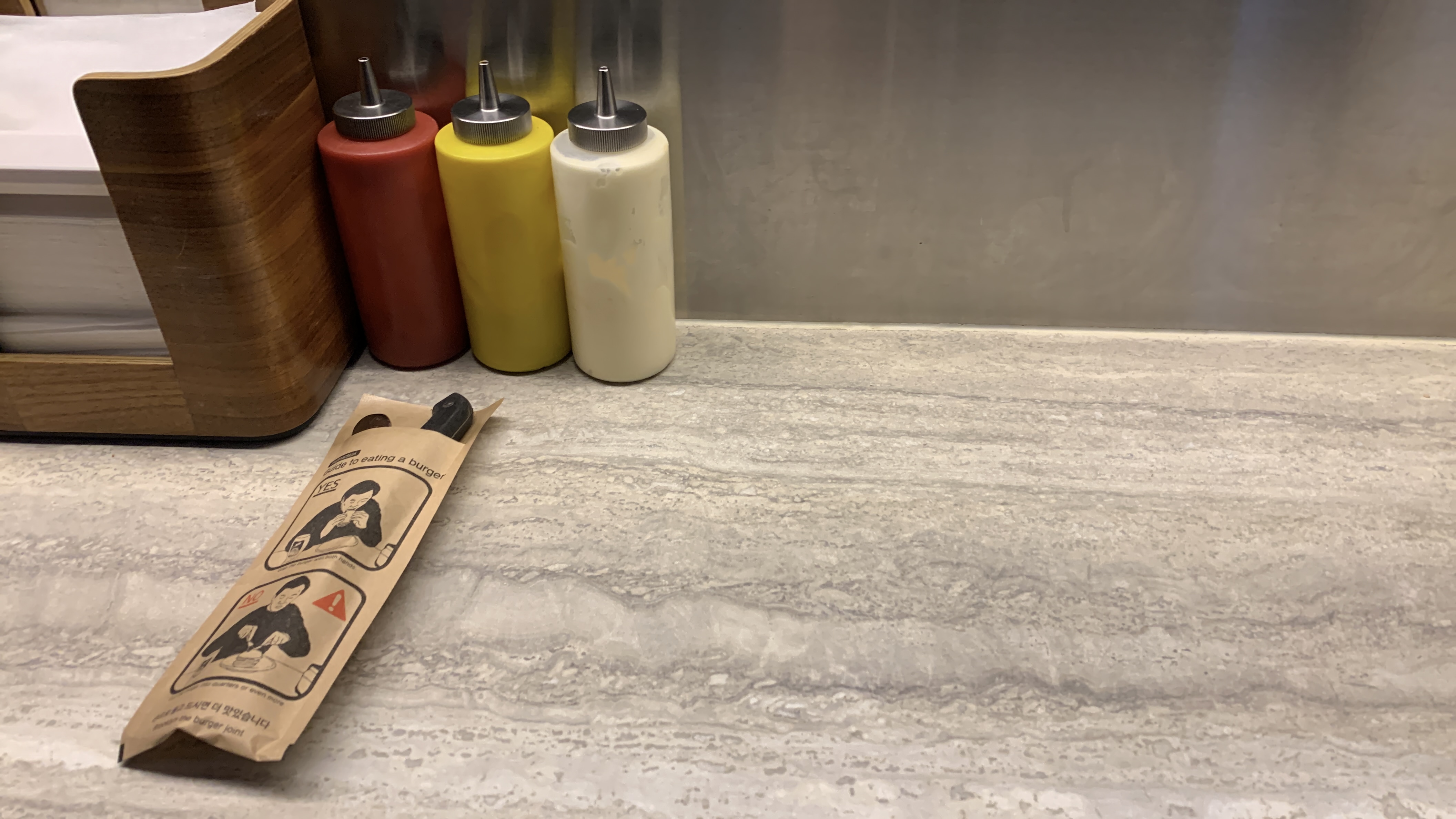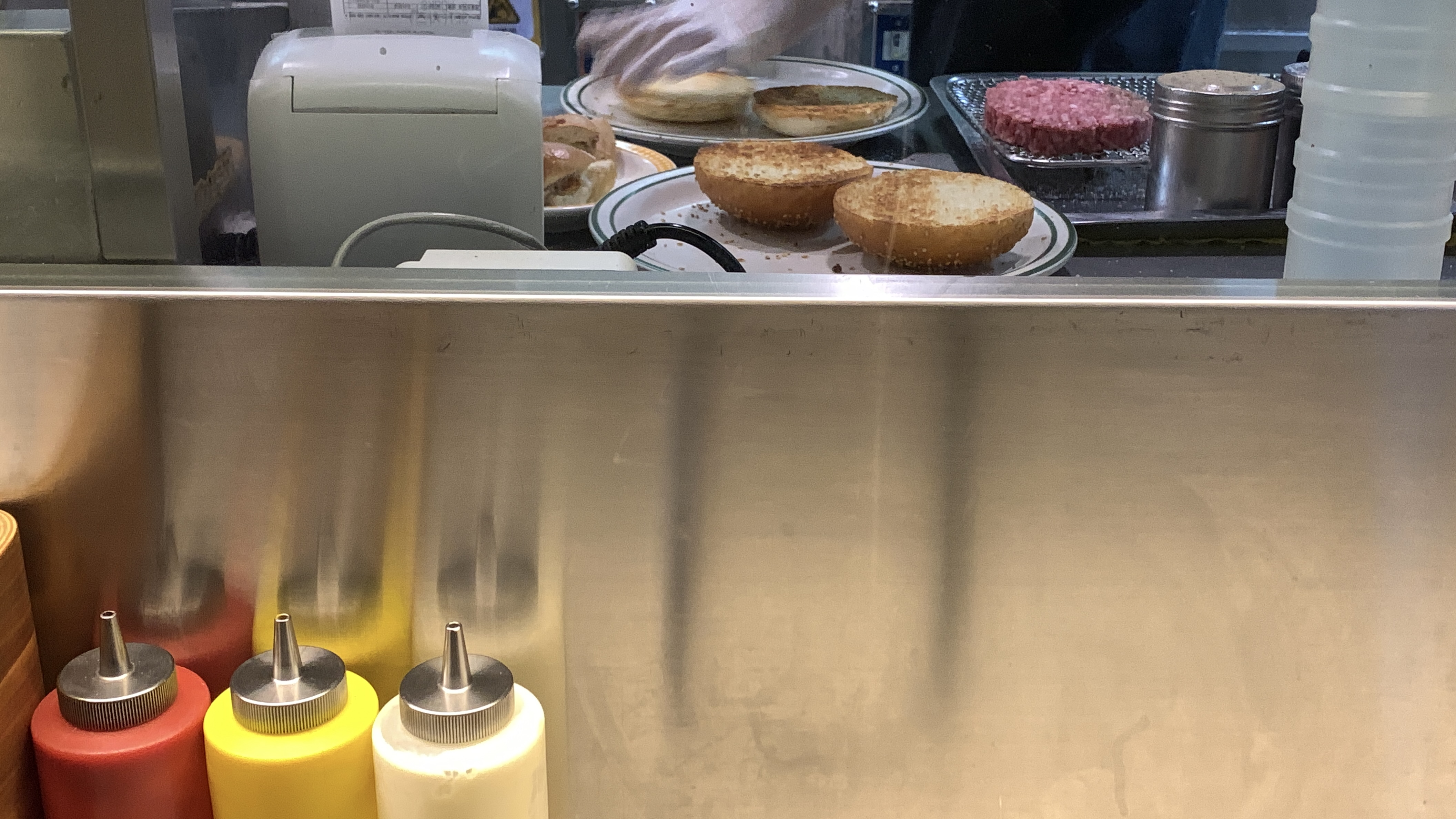 앉으면 눈앞에서 햄버거가 만들어지는 과정을 볼 수 있다.