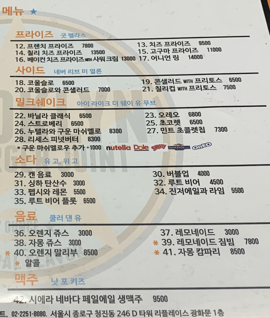 수제버거 먹고 싶을 때 종종 들르는 브루클린 더 버거 조인트. 주로 광화문 디타워점 잠실 롯데월드몰점 두 곳을 방문하고 있다. 이번에는 광화문 디타워점에 갔다.