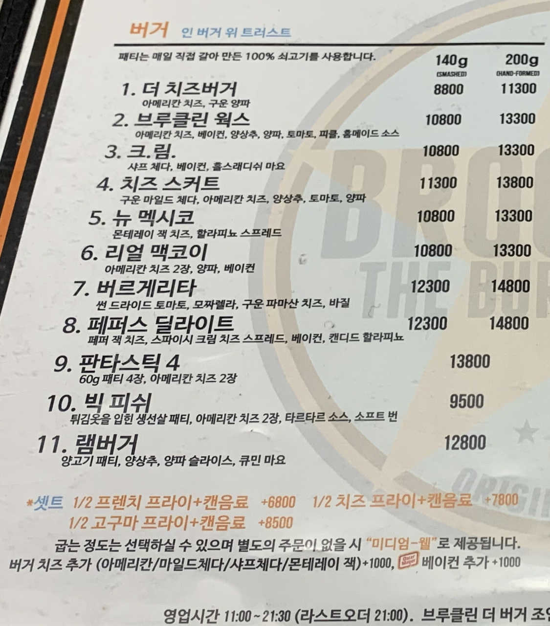 1. 수제버거 메뉴 추천 : 브루클린 웍스