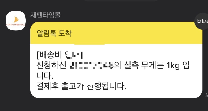 물건이 일본 배대지에 도착하면 이메일 또는 카톡으로 배송비 결제하라는 안내문 온다.