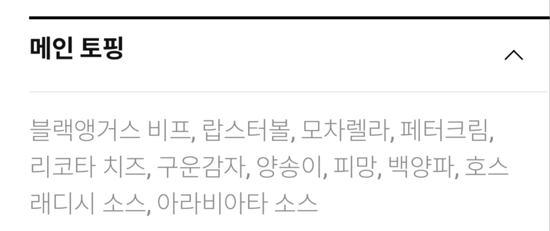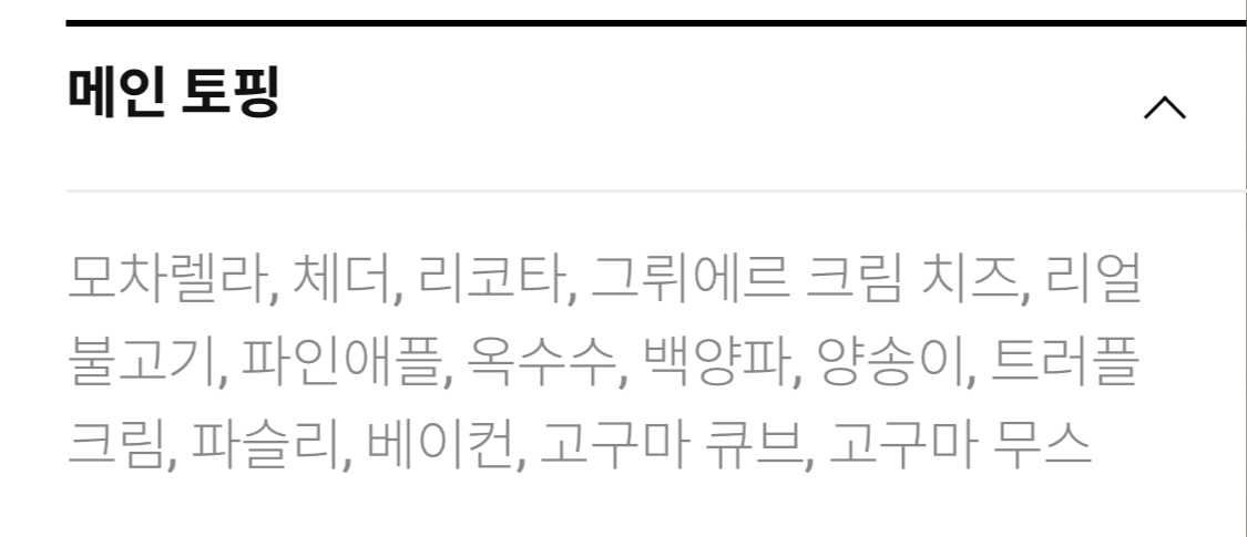 메인 토핑을 보면 양송이와 불고기가 들어간다.