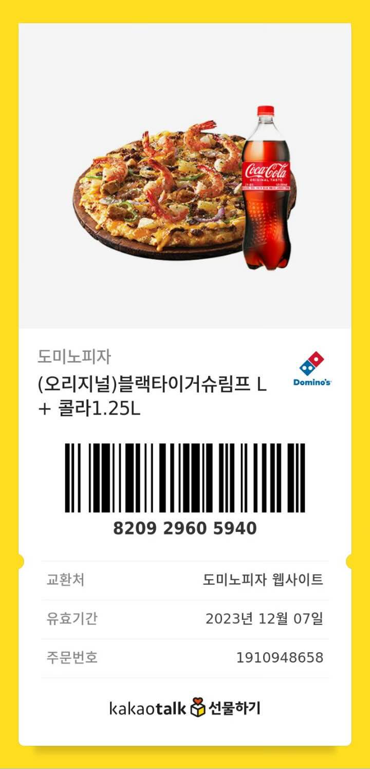 [도미노피자] 배달비(X) 기프티콘 사용 방법 원하는 메뉴 변경 주문하는 법 | 카카오톡 선물 e-쿠