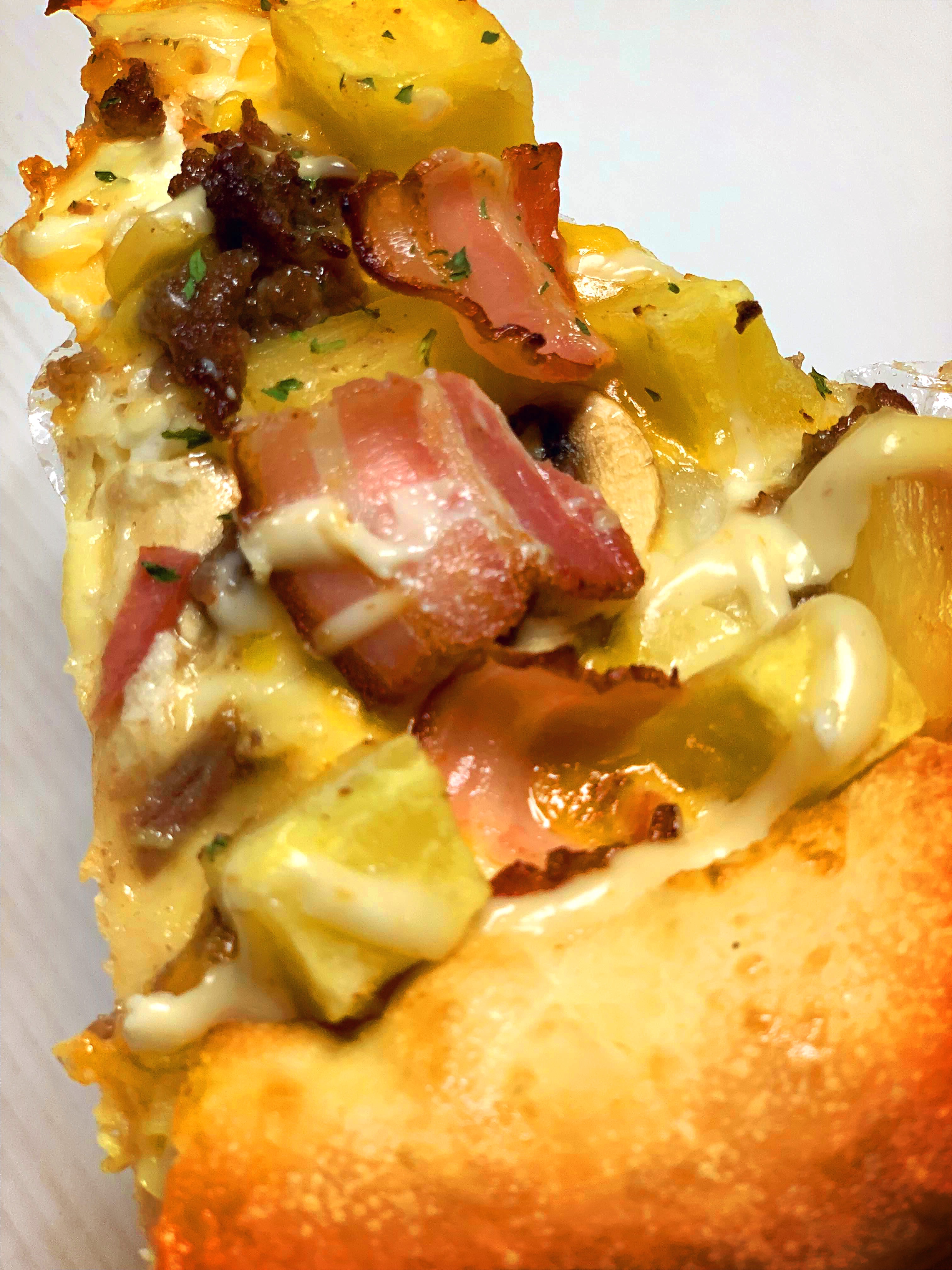 이 두가지 재료 및 고구마 큐브, 그리고 고구마피자의 소스가 절묘하게 잘 어우러지며 맛있는 한입을 선사한다.