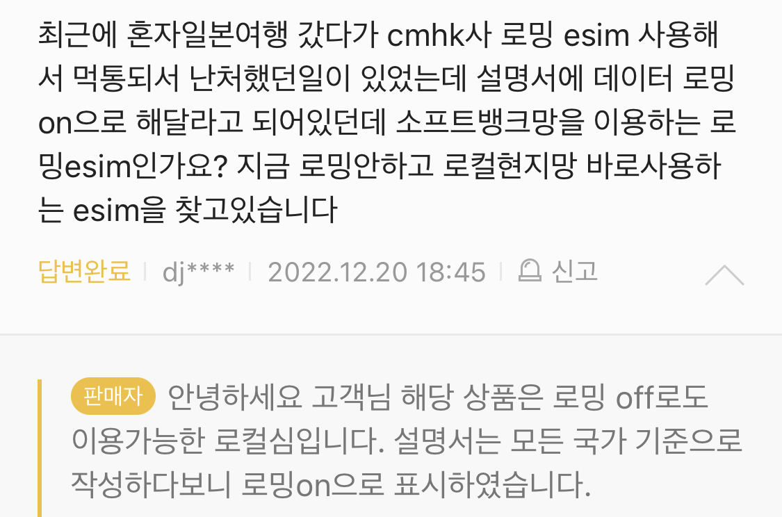cmhk사(일본 현지 로컬심X 홍콩 로밍심O) eSIM 이심 사용해서 일본 여행 한 사람들 후기 보면, 데이터 계속 끊기고, 속도 느려서 불편했다는 말이 너무 많다.