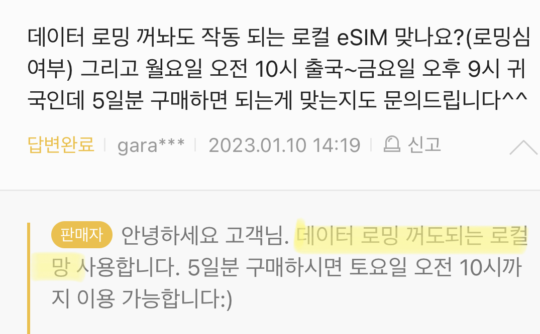 - 데이터 로밍 off 해도 사용 가능 국내에서 구매 가능한 일본 로컬망 사용하는 eSIM은 몇 없는 것 같다. 링크 첨부한 네이버스마트스토어 <이심이지> 이곳이 후기 괜찮아서 나도 여기에서 구매했다.