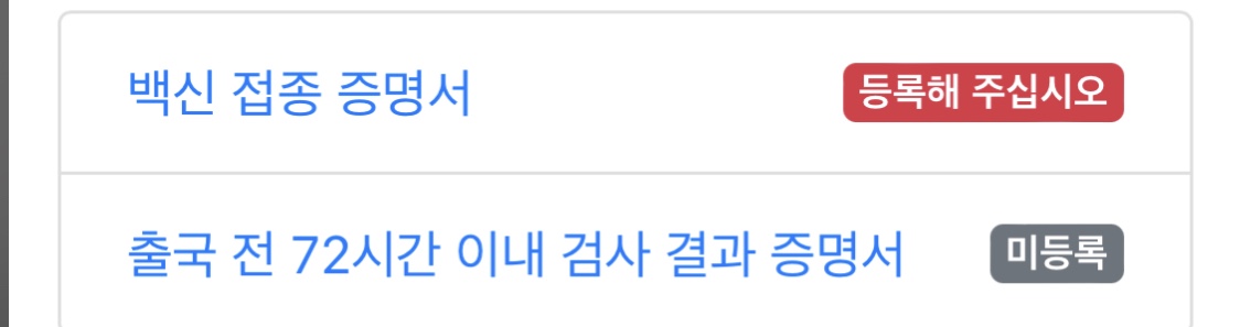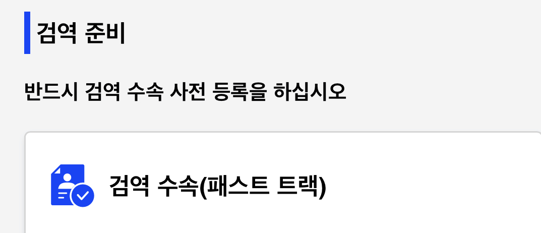 1. 검역신고: 백신 접종증명서 또는 PCR 음성확인서 확인 단계. VJW 줄 및 종이 작성자 줄 별도.