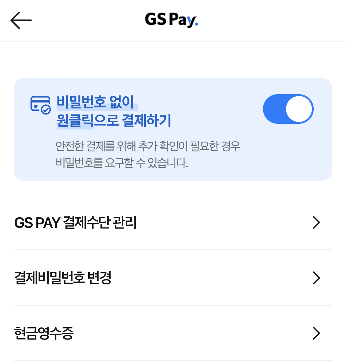 결제 정보에서 지에스 페이 관리를 클릭합니다.