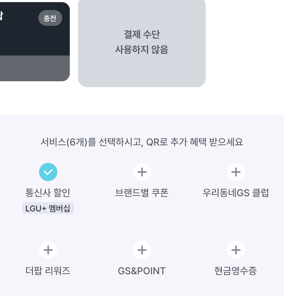 결제시 지에스 포인트 자동 적립되는 것뿐만 이니라 통신사 할인 혜택 적용까지 한번에 가능합니다.