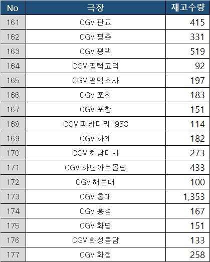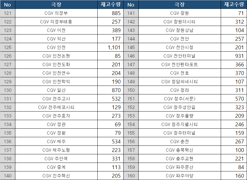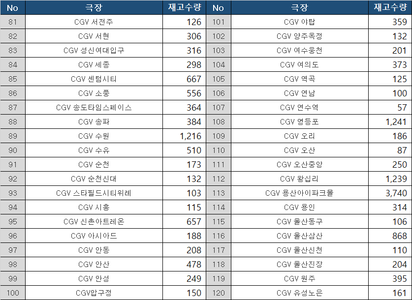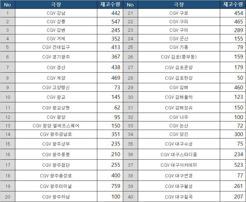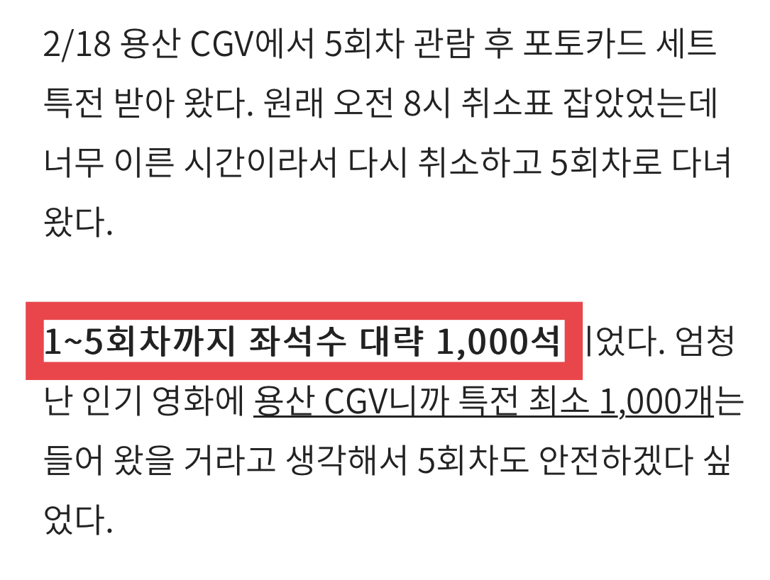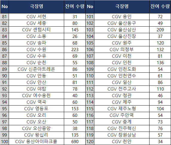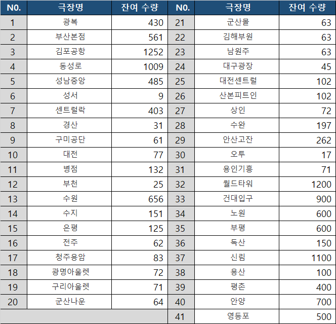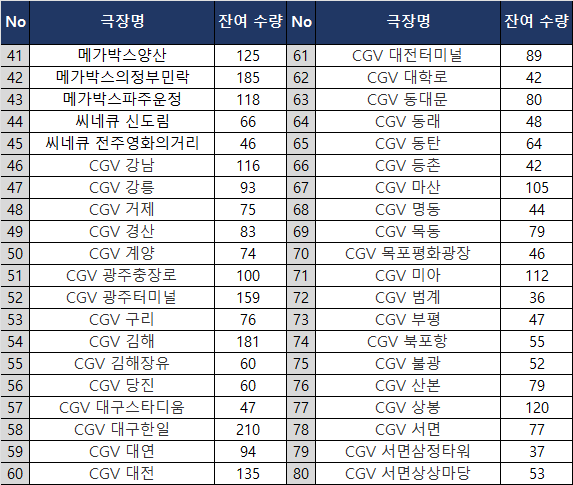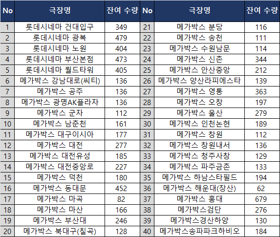 메가박스 코엑스•CGV 용산은기본 1,000개는 들어온다. 진짜로 적게 들어왔다면 800개.
