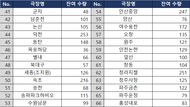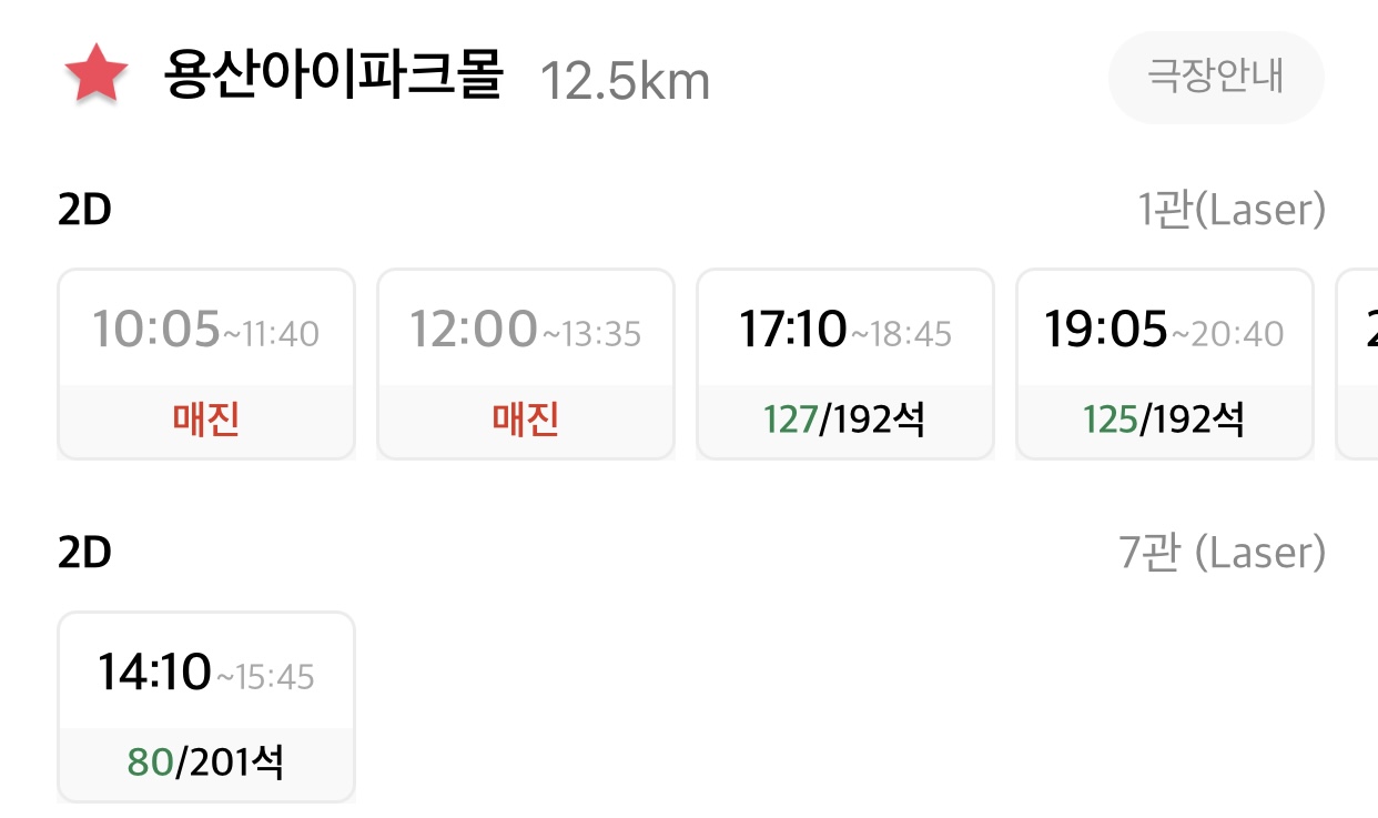 - 왕십리: 282석 3타임. 1회차 전부 수령. 2회차 소진임박.