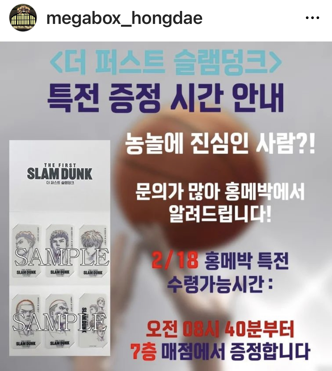 상견니 특전 수령을 대비해 각 지점별 특전 물량 비율을 미리 파악해두기 위해서, 상견니보다 먼저 개봉한 <더 퍼스트 슬램덩크> 특전 상황을 유심히 지켜봤었는데 2/18 토요일 증정되는 포토카드 세트 특전, 귀멸의칼날 0권 열풍 때와 비슷한 급인 것 같다.