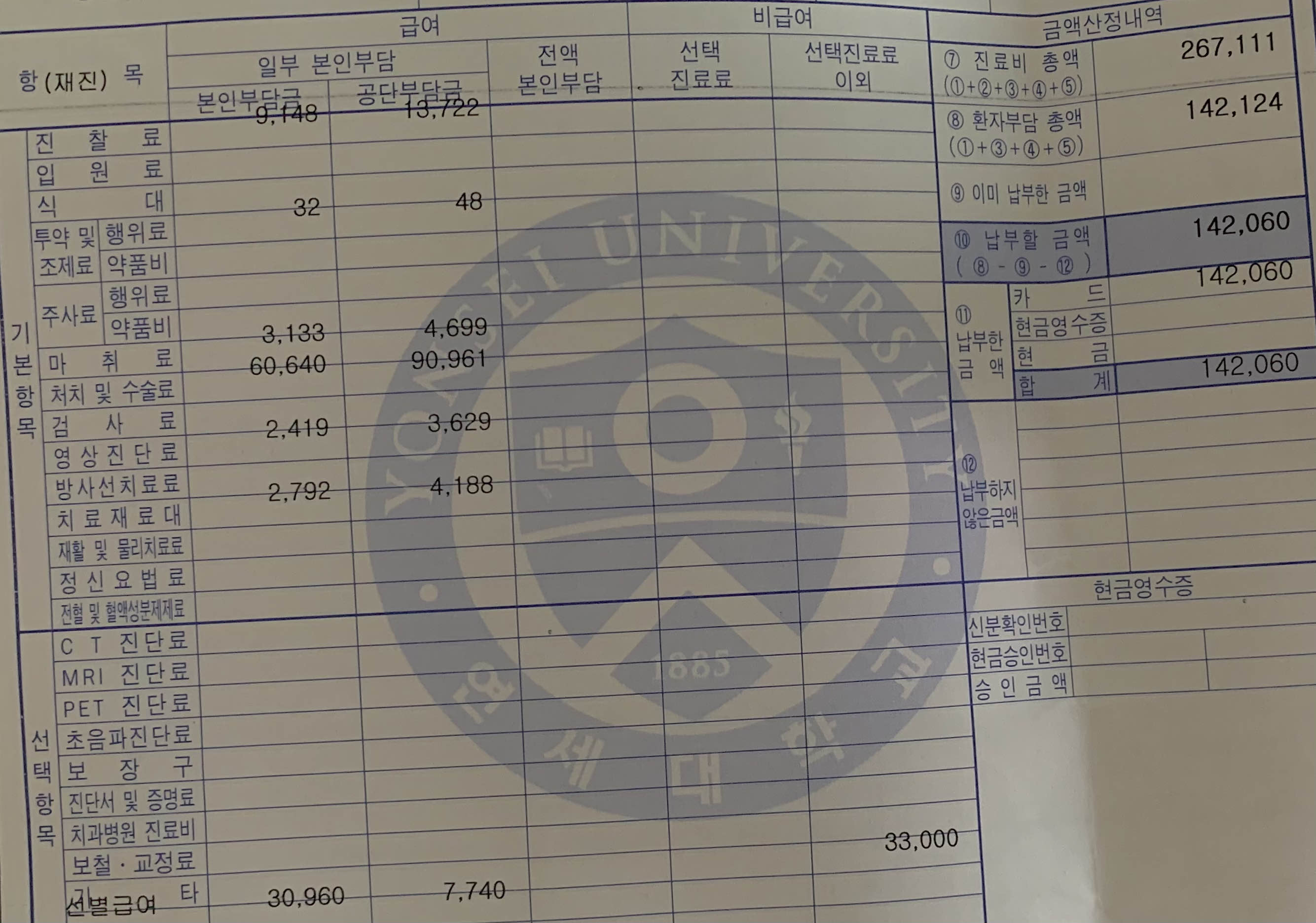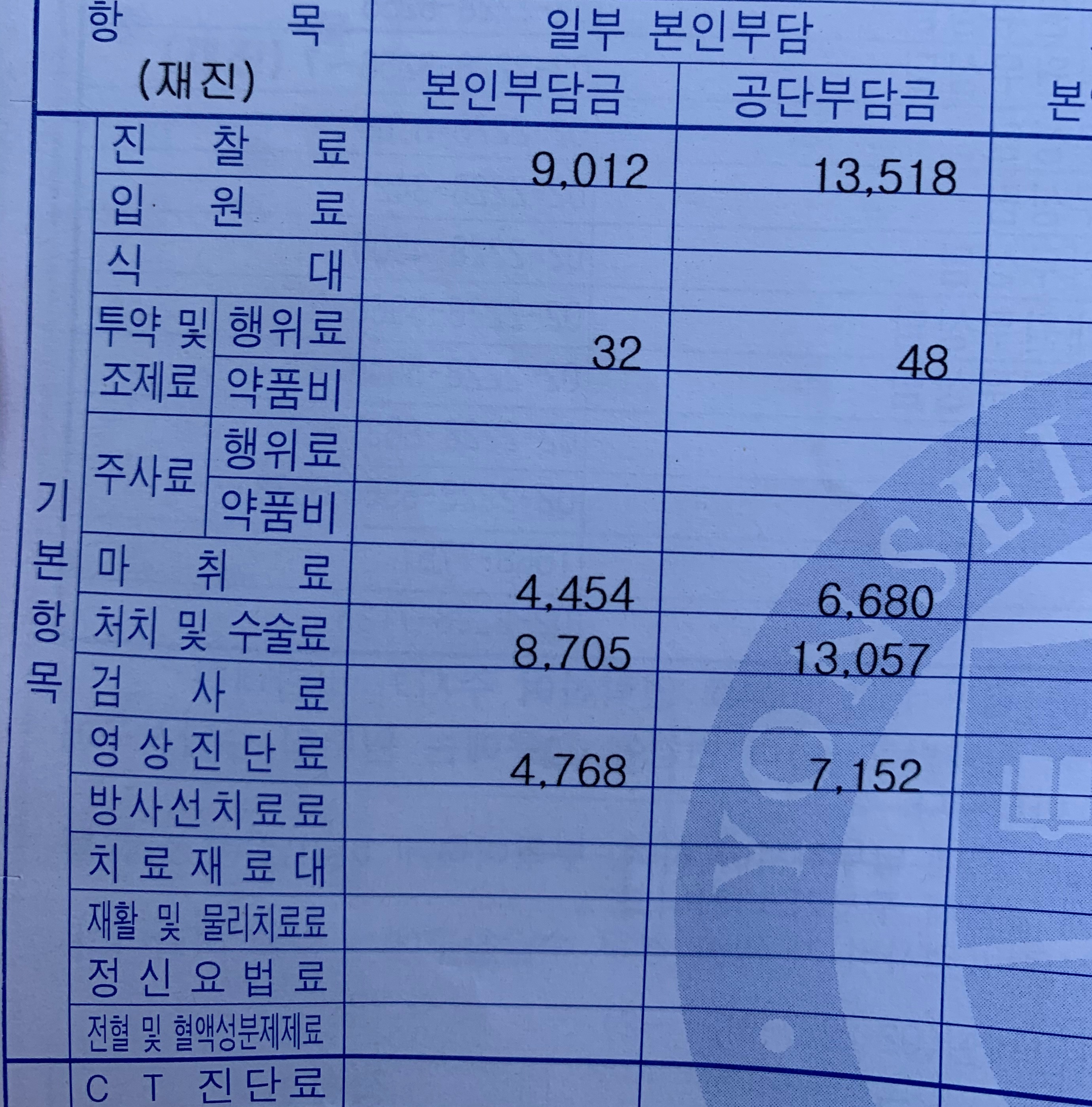*2016년 경에는 교수 특진비가 있었습니다. 지금은 교수든 일반의든 모두 진료비가 동일하지만, 당시에는 교수의 경우 전체 진료비에서 15%정도 더 비쌌습니다. 감안해서 봐 주세요.