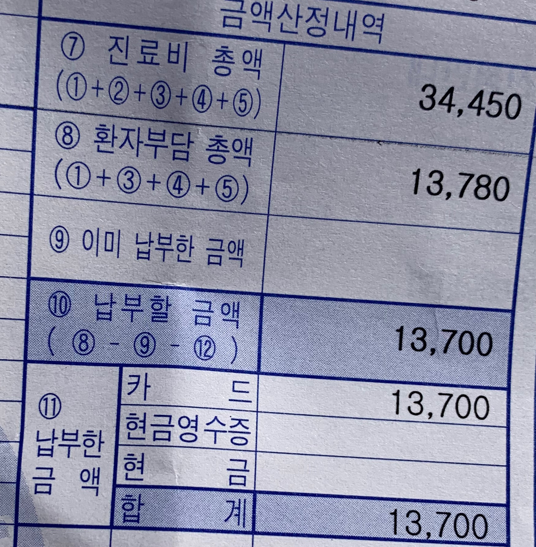 5. 진찰료+(발치 후 찍은)엑스레이 사진 비용: 13,700원