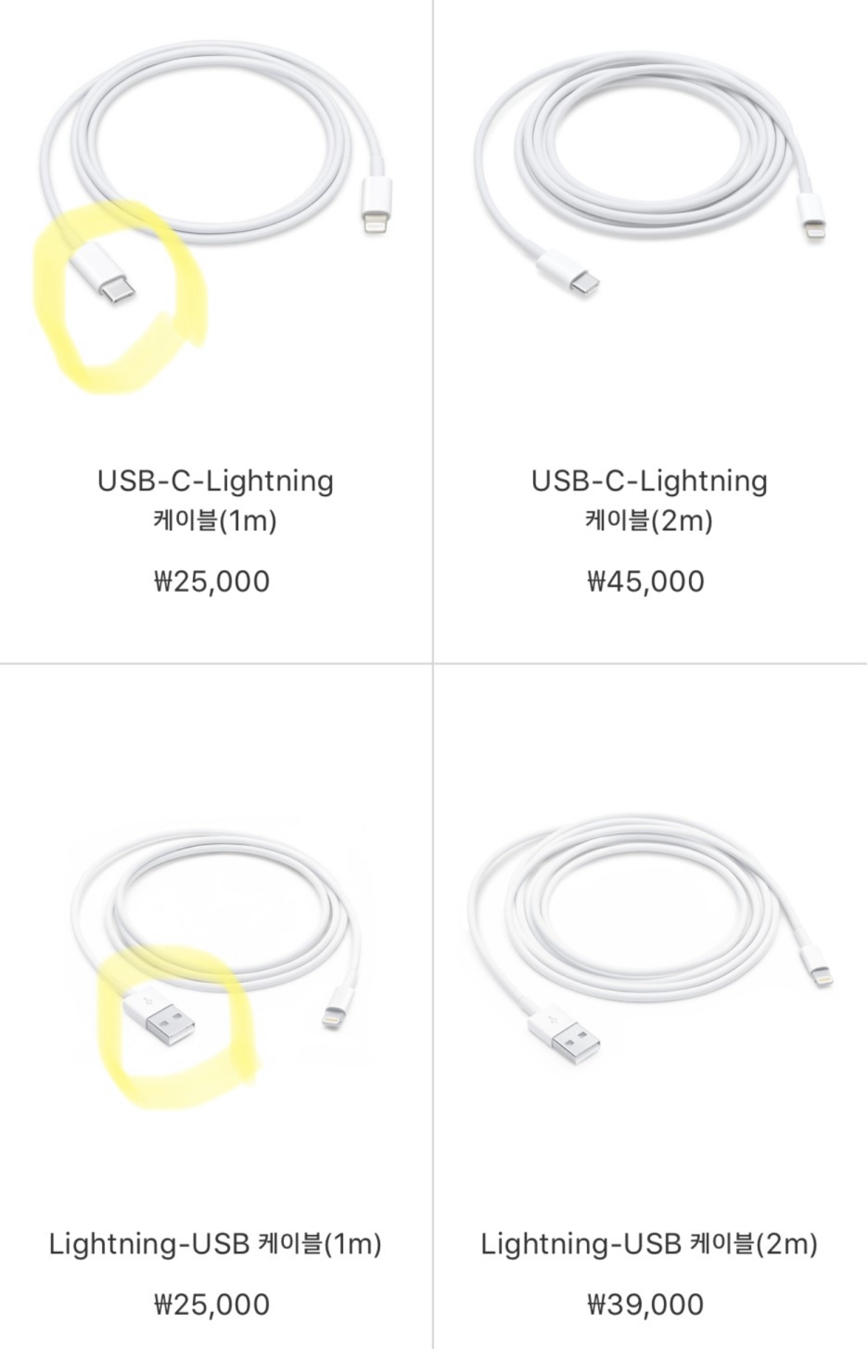 • Lightning-usb 케이블 (1m, 2m)