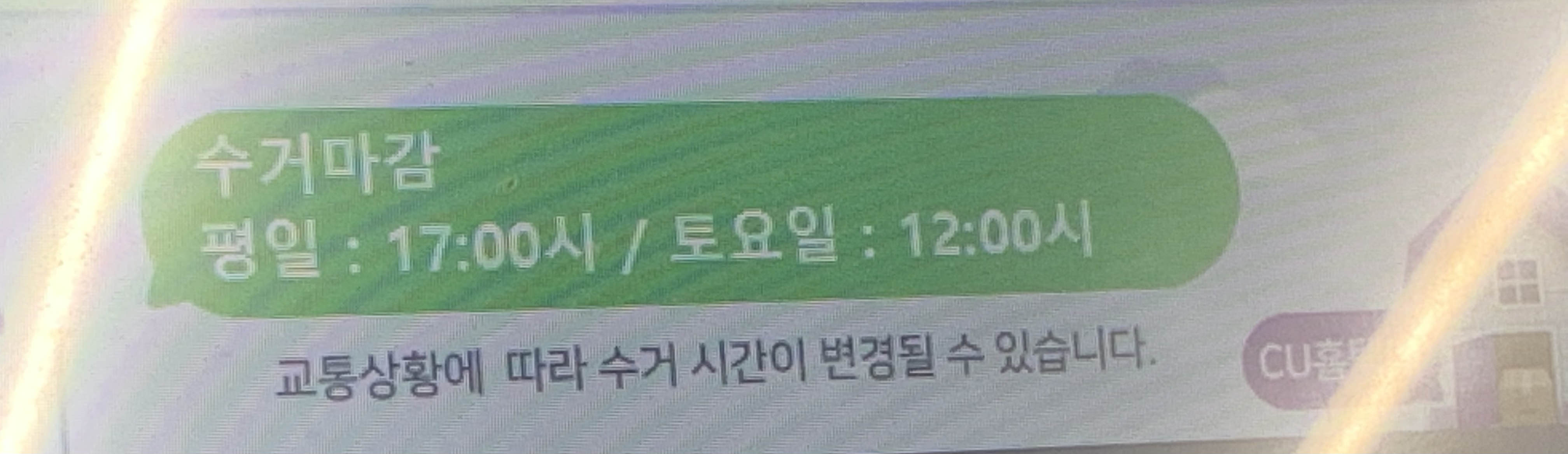 그런데 웬만하면 카톡 메세지 받자마자 바로 가는 게 좋다. 늦게 가면 복잡한 편의점 내에서 물건 분실될 수도 있다.
