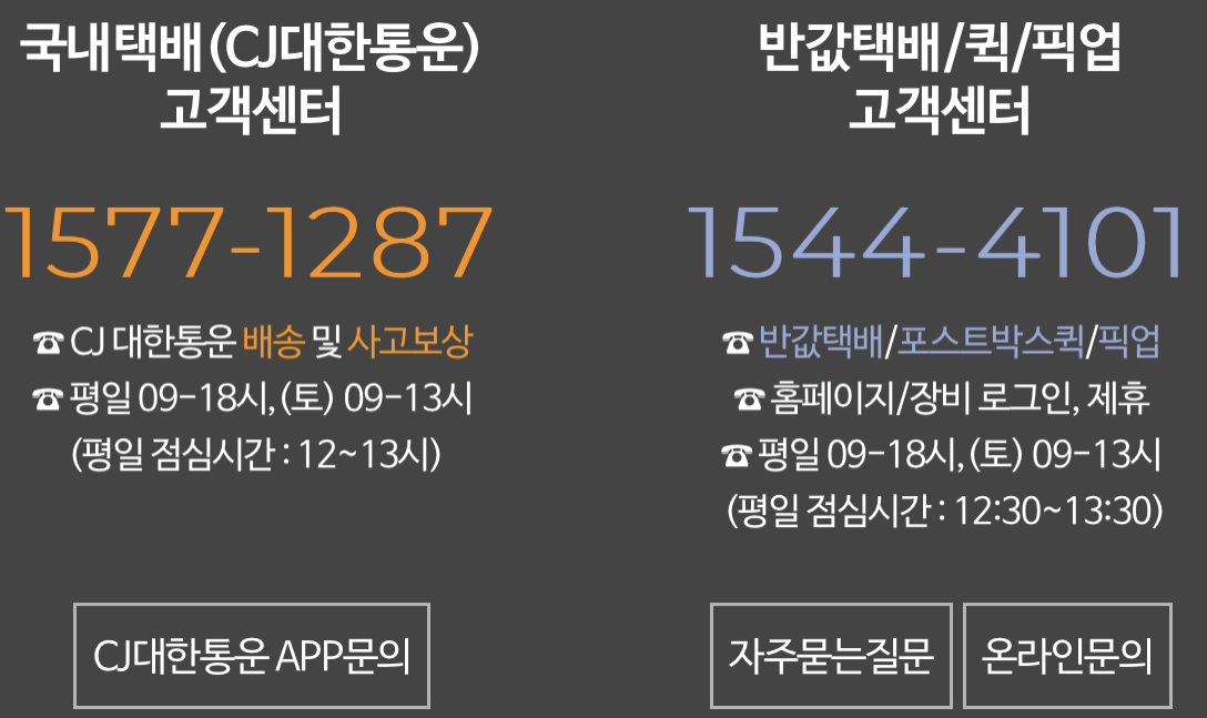 국내택배(CJ대한통운) 고객센터 1577-1287