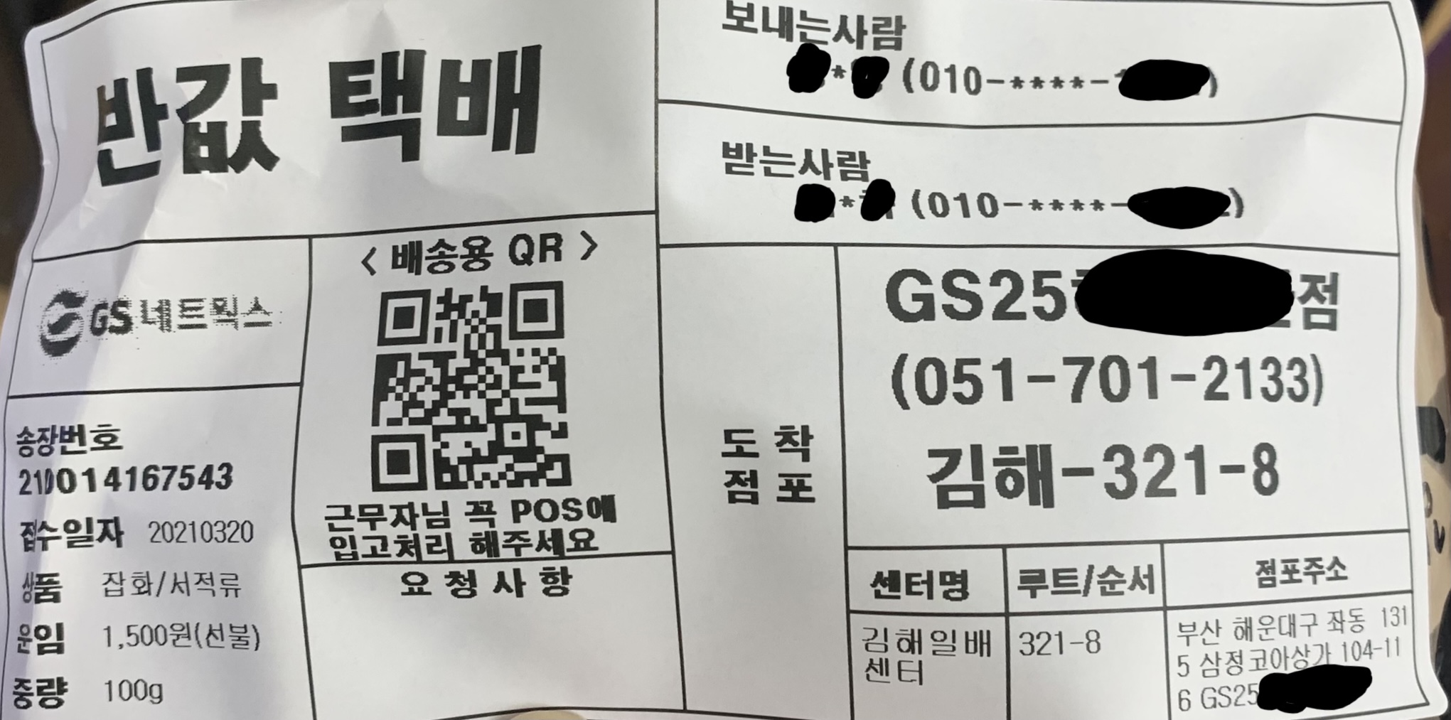 지에스 반값택배의 경우 내가 받는 사람 입장이었는데 분실됐다. 보통 배송기사 인계되면 그날 당일, 혹은 늦어도 3일 이내로 점포 도착하는 게 기본이다.