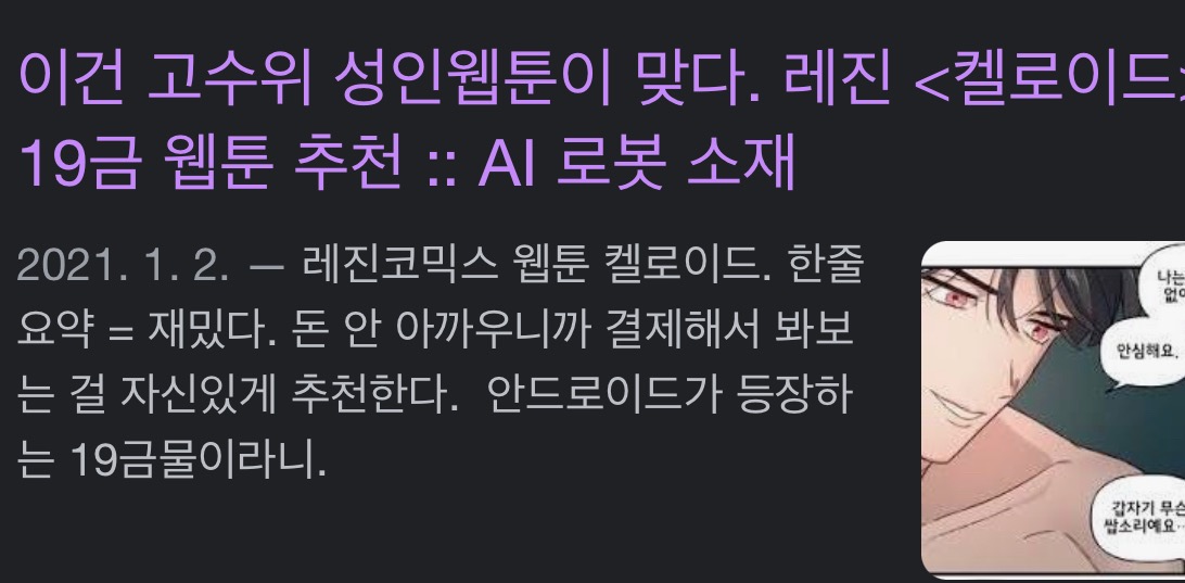 본격 안드로이드가 등장하는 수위 높은 웹툰.